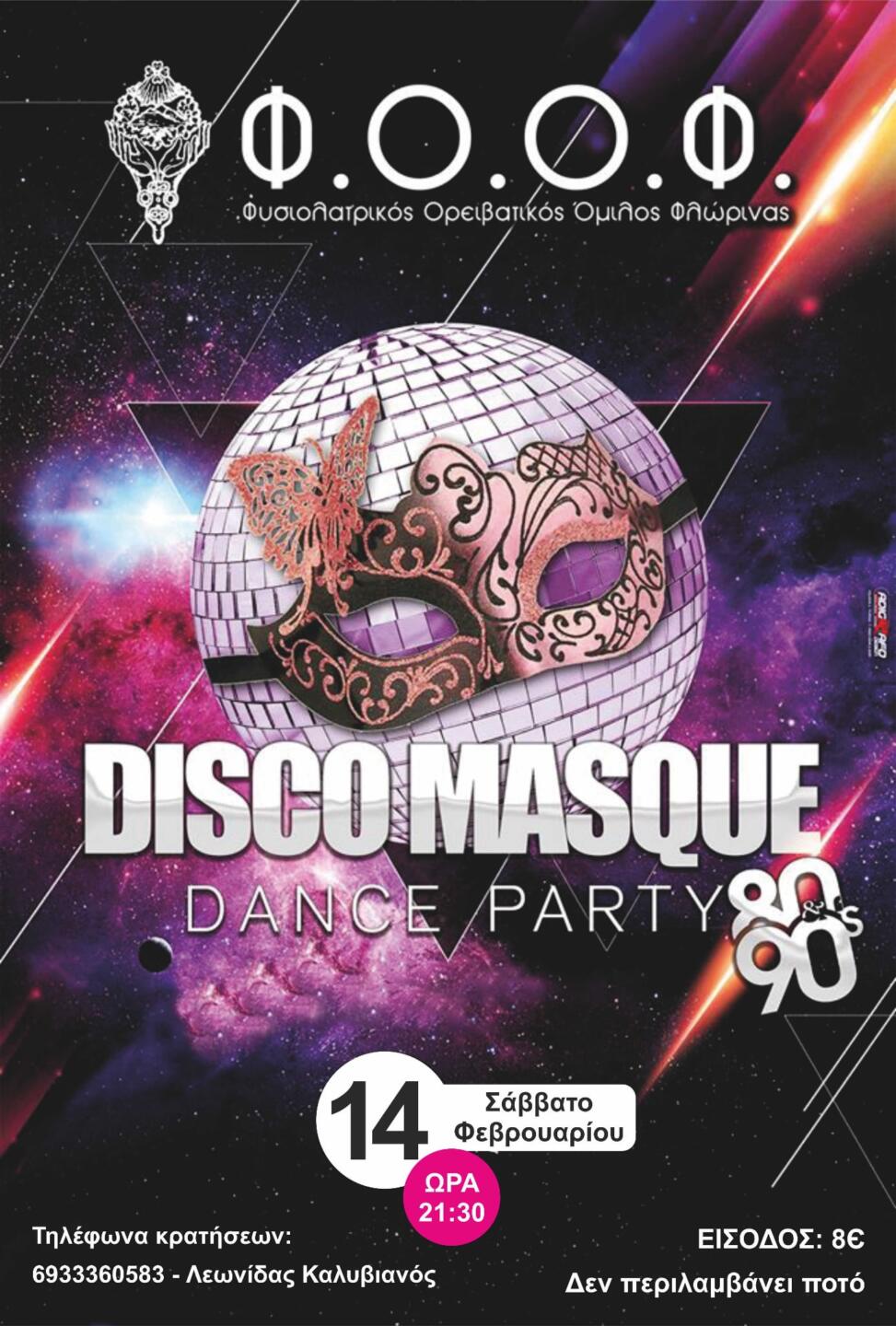 Τα φωτορυθμικά να γυρίζουν τρελά, ο καπνός να κατακλύζει την πίστα, η ντισκομπάλα να έχει την τιμητική της, ξεκλειδώστε τις αναμνήσεις των νεανικών σας χρόνων και ξεφαντώστε σε Disco ρυθμούς των δεκαετιών 80s & 90s στο τουριστικό περίπτερο του Φ.Ο.Ο.Φ. στο λόφο του Αγ. Παντελεήμονα το