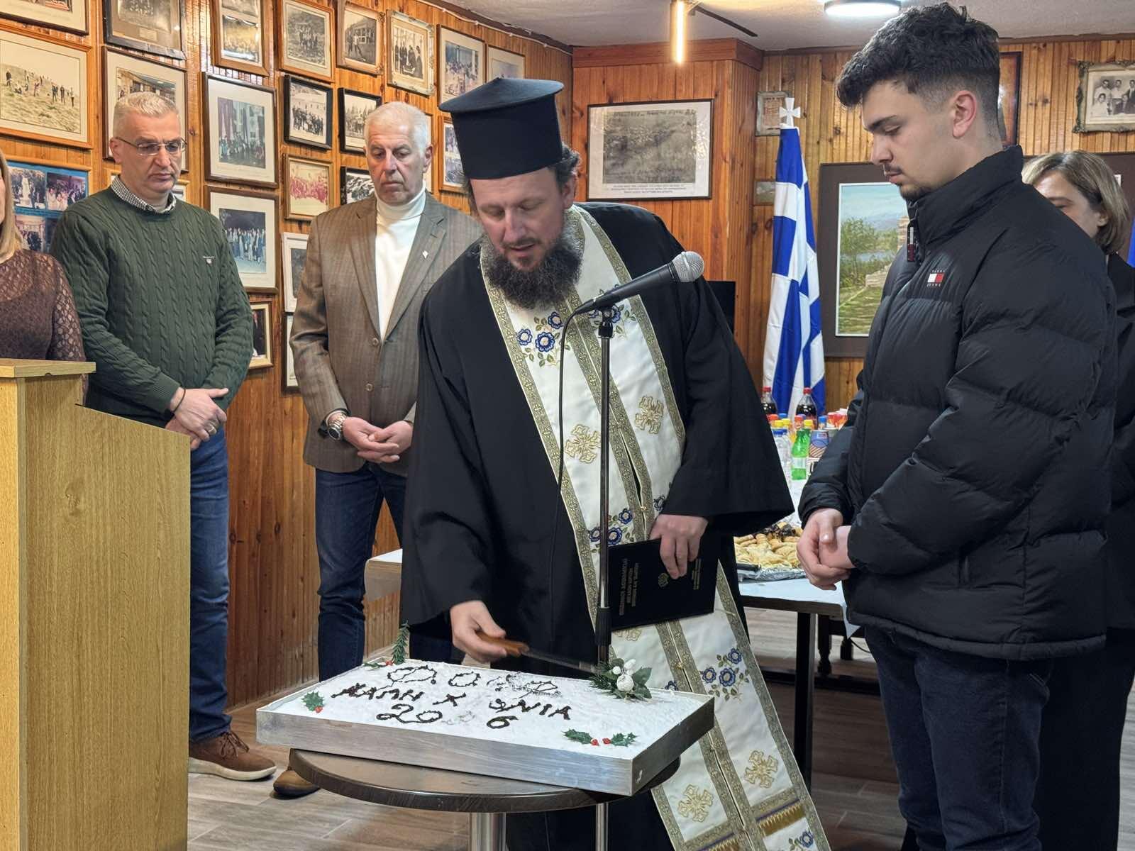 Την πίτα ευλόγησε ο π. Αγαθάγγελος.